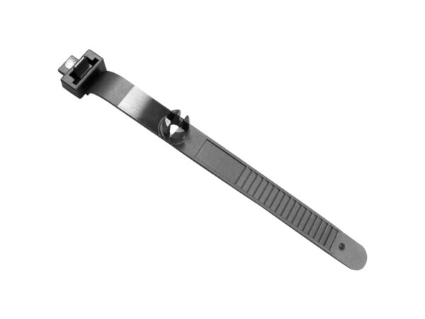 Hanking Tie Rivet Panel Mount Nylon 66 for organizing cables or hoses, offering flexible, adjustable fastening. Mounting hole Ø7.0-7.2mm. Panel Thickness 3.0mm. Length 171.2mm. Color Natural or Black.