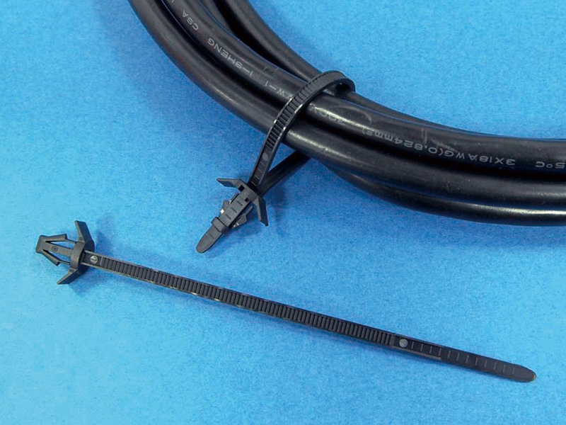 Push Mount Cable Tie (LxW) 123×3.4mm. Panel Hole dia.Ø45.4mm. Panel Thickness 2.0-3.2mm. Nylon 66. Available in Natural & Black.This product has UL Safety Certification