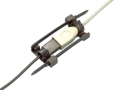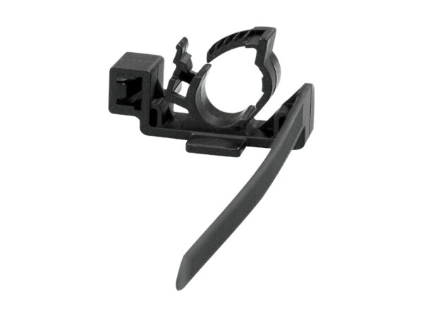 Adjustable wire clip featuring a slider mechanism for securing mated connectors. Made from Nylon 66, Color Black. Designed to prevent accidental disconnection.