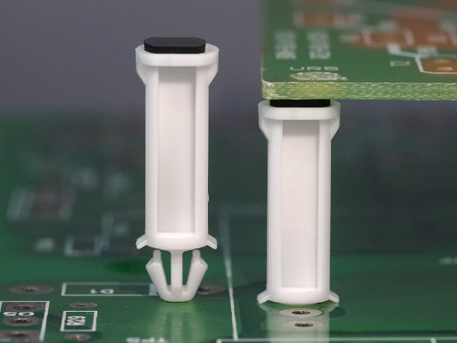 Snap lock spacer provided with a pilot hole of 2.5 mm an arrowhead with tension wings for a 4.8~5 mm mounting hole. Standoff height is 4.8 mm.
