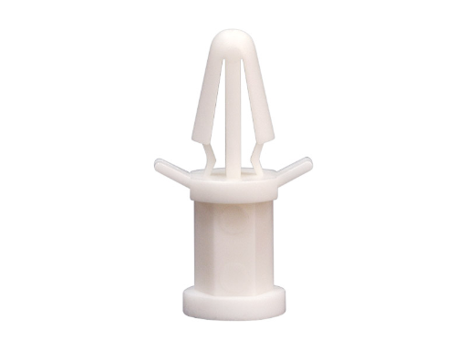 Snap fit spacer with tension wing for a 4 mm panel hole equipped at the chassis side with a pilot hole of 2.5 mm for an M3 self tapping screw. Standoff height is 20 mm.
