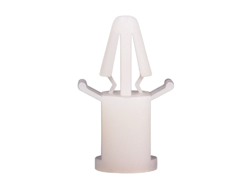 Snap fit spacer with tension wing for a 4 mm panel hole equipped at the chassis side with a pilot hole. Standoff height is 8.5 mm.