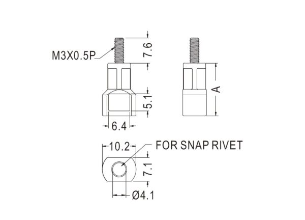 Threaded M3 PCB support rivet mount. To be used with our SR4 snap rivet series (sold separately). Spacer length is 25.4 mm.