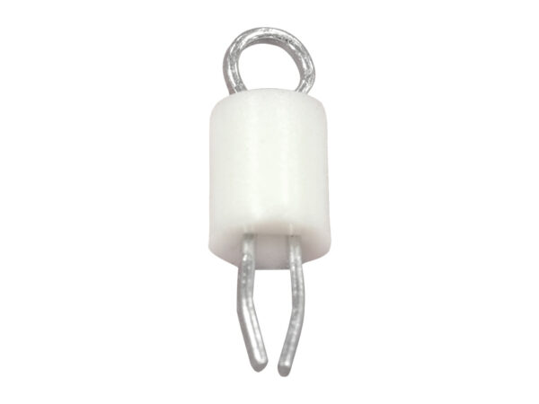 White Color-coded thru-hole Test Pin with snap-in mounting and heat-resistant base, suitable for wave or reflow soldering. Gold Plated Phosphor Bronze Wire. Housing UL-94V0 PBT Material. Fits a Ø1.0mm PCB hole.