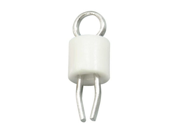 White Color-coded thru-hole Test Pin with snap-in mounting and heat-resistant base, suitable for wave or reflow soldering. Gold Plated Phosphor Bronze Wire. Housing UL-94V0 PBT Material. Fits a Ø1.5mm PCB hole.