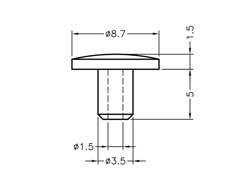 Push In Rubber Foot. Hole Ø3.5mm Surface Ø8.7mm.The push-in design enables tool-free, quick installation for both temporary and permanent use.