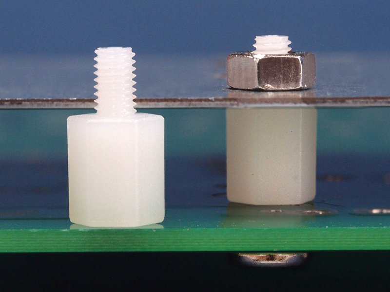 M3 hexagonal nylon spacer; male/female. Spacer body length is 7.5 mm.