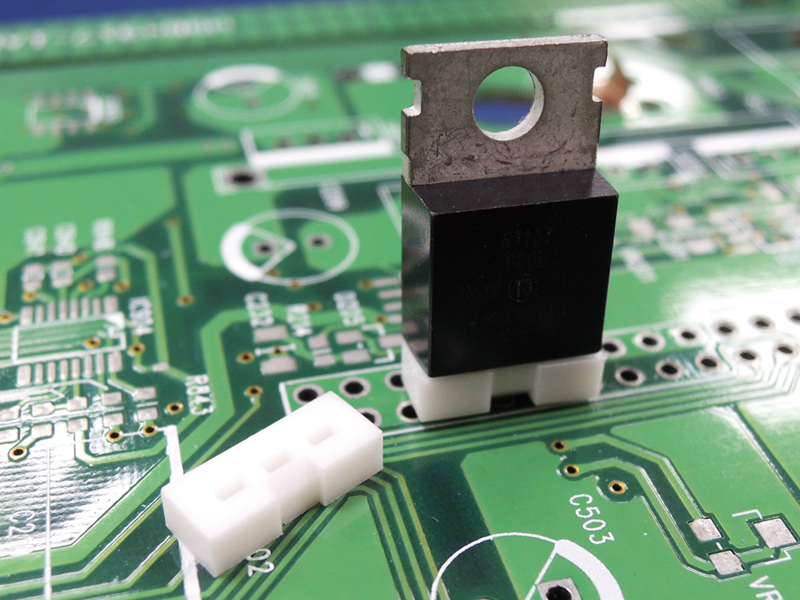 Rectangular Spacer for 3 leads Power Transistors. Height 2.5mm. Material Nylon 66. Color Natural/Black. This mount is ideal for insulating and protecting the lead wires of power MOSFETs, IGBTs and diodes.