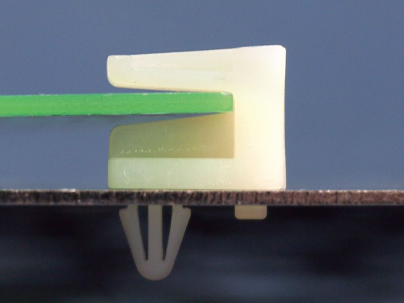 PCB Edge Hold Spacer Snap Lock. Spacer Height 6.4mm. Chassis hole dia. Ø4.5mm. Mounting hole thickness 1.6mm. Nylon 66. Color Natural/Black