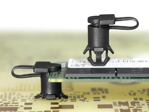 M.2 (NGFF) board Spacer Snap In Mounting Retention Clip . Height 6.0mm. Mounting Hole Thickness 2.27mm. Material Nylon 66. Color Natural/Black/Green/Blue. A vertical push-to-lock/unlock design firmly secures the M.2 card for reliable mechanical stability.