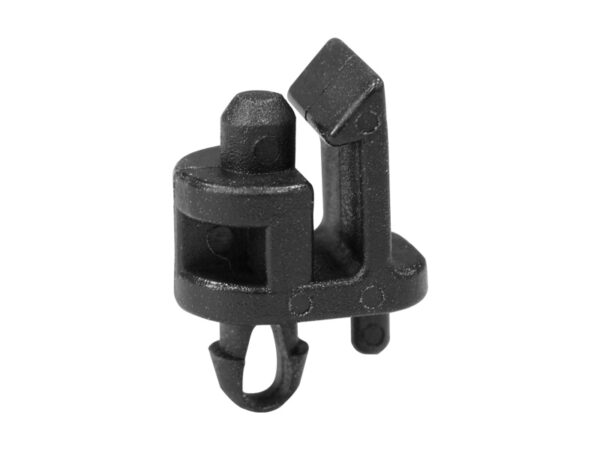 Spacer Edge Hold Nose Retention teardrop Snap Fit. Nylon 66. Color Natural/Black. Snap Fit hole dia. Ø2.8mm. Thickness 1.7mm. Top hole 2.4mm. Spacer Length 5.0mm