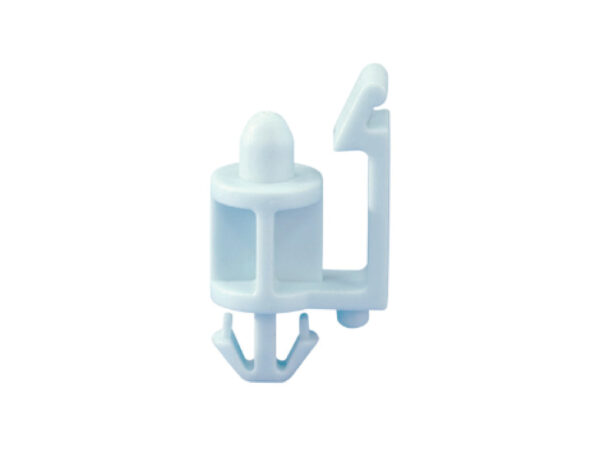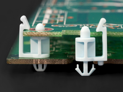 Spacer Edge Hold Nose Retention arrowhead Snap Fit. Nylon 66. Color Natural/Black/Blue. Snap Fit hole dia. Ø4.8mm. Thickness 2.0mm. Top hole 3.2mm. Spacer Length 7.0mm
