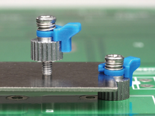 M.2 (NGFF) board Spacer Metric M2 Screw Mount Turn (rotation) Latch Lock. Height 3.3mm. Material POM/Steel. Color Blue.