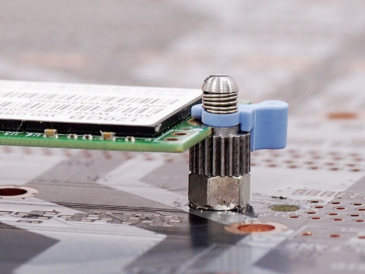 M.2 (NGFF) board Spacer Metric M2 Screw Mount Turn (rotation) Latch Lock. Height 3.6mm. Material POM/Steel. Color Blue.