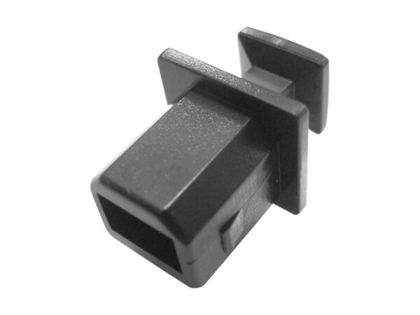 USB Type-B Female Port Dust Cover w/Handle. Material ABS. Color Black. Protect your USB Type-A port from dust and damage with this dummy plug with Pull Tab.