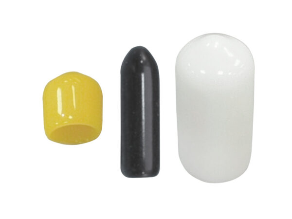 Round Dip Molding End Cap Soft PVC. Inner dia.Ø 4mm. Length 8mm. Available in Natural/Black/Red/Yellow/Green/Blue/White. This stopper protects rods and pipes from dust and water. Also used for insulation of capacitors.