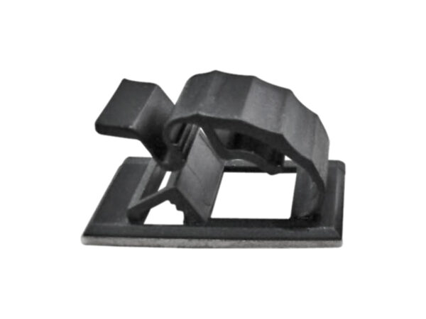 Adhesive Mount 20.5×12.5mm Round Lock Tension Wire Clip. Height 6.5mm. Material Nylon 66. Available in Natural or Black
