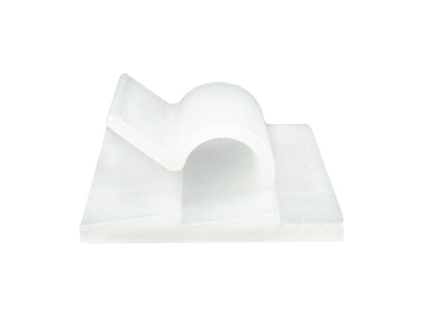 Adhesive Mount 19.3×18.8mm Round Wire Clip Side Entry. Holding dia. Ø5.8mm. Material Nylon 66. Available in Natural or Black