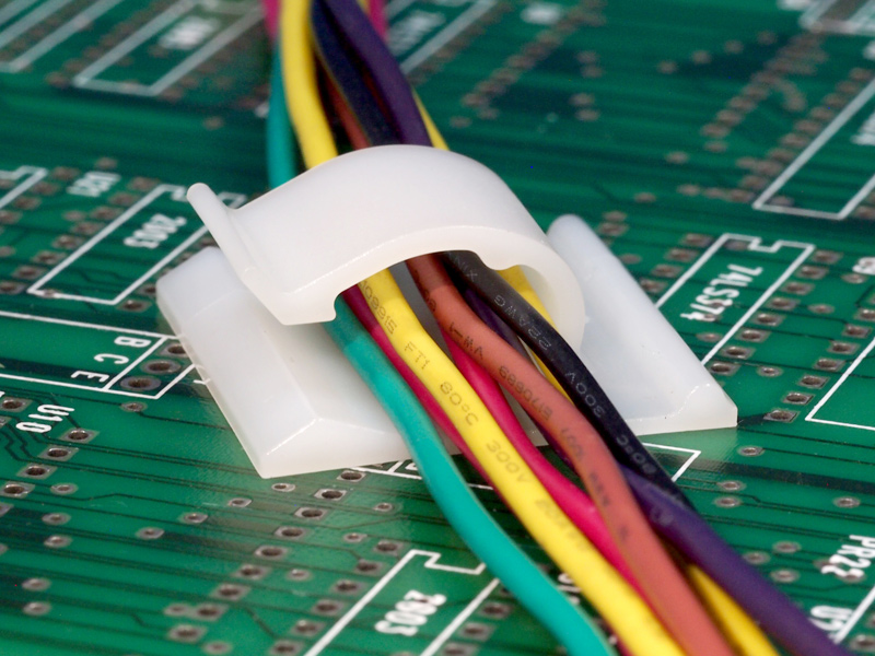 Adhesive Mount 25.4×25.4mm Round Wire Clip Side Entry. Material Nylon 66. Available in Natural or Black