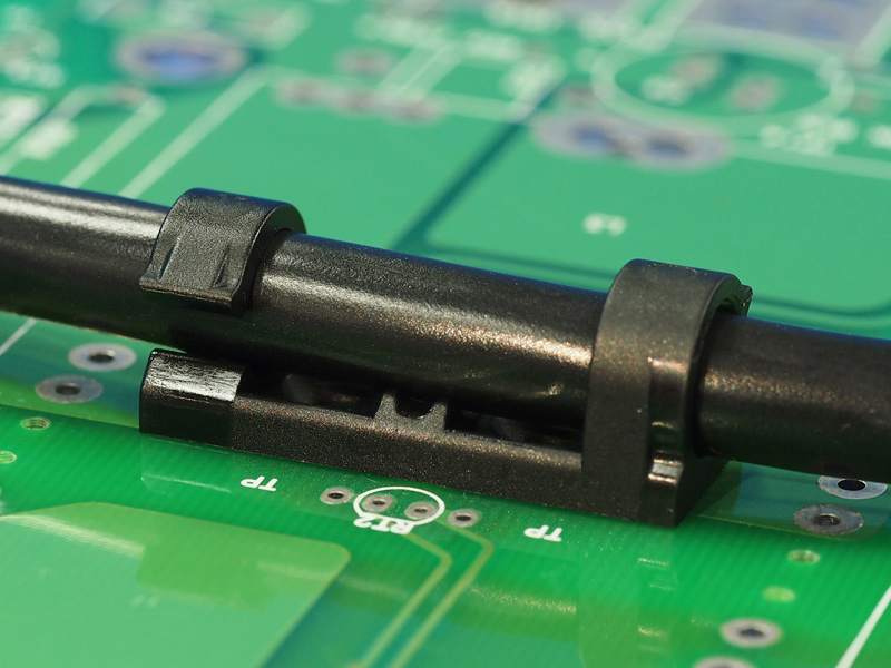 Adhesive Mount 29.0×10.0mm Dual Round Adjustable Lock Wire Clip Side Entry. Holding dia. Ø6.2mm. Material Nylon 66. Available in Natural or Black