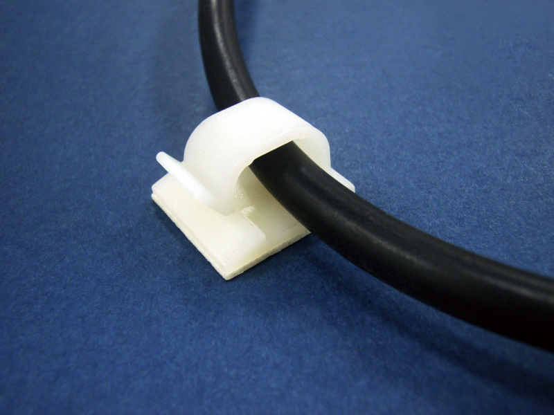 Adhesive Mount 29.4×19.0mm Wire Clip Side Entry. Holding dia. Ø4.5mm. Material Nylon 66. Available in Natural or Black