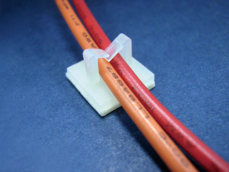 Top Entry Latch Gate Micro Wire Saddle with Adhesive Base 9.5×9.5mm. PA66. Available in Natural and Black