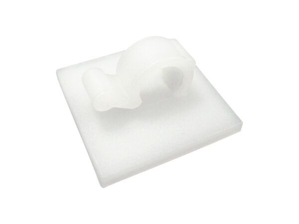 Adhesive Mount 19x19mm Round Wire Clip. Holding dia. Ø6mm. Material Nylon 66. Available in Natural or Black