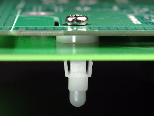 Stand-off Expansion Nut. For hole size 8x8mm. Standoff Height 3.2mm. Mounting hole Thickness 3.0mm. Material Nylon 66. Color Natural/Black. For securing panels to a chassis.